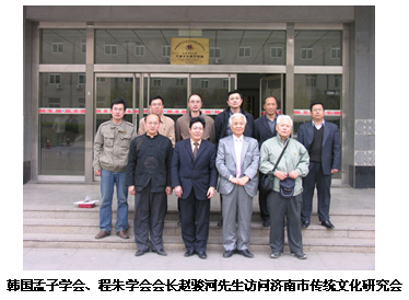 2、2008年4月3日至4日,韓國同德女子大學(xué)名譽教授、韓國孟子學(xué)會會長、韓國程朱學(xué)會會長趙駿河先生對濟南市傳統(tǒng)文化研究會進行了為期兩天的訪問。受湯傳忠會長委托,車士存秘書長、彭耀光副秘書長盛情接待了趙先生。