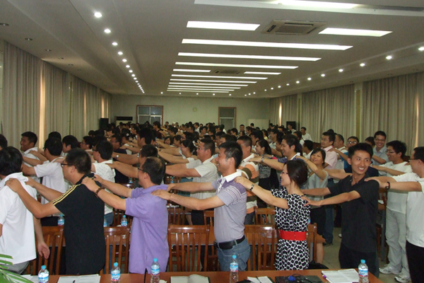 在培訓(xùn)的最后,姜偉老師帶領(lǐng)大家?guī)ё哌^(guò)了一段心靈之旅,讓我們很好地審視了自己的過(guò)去,思考了自己的現(xiàn)狀,感懷了一路走來(lái)的人生。為了達(dá)到更好的效果,會(huì)場(chǎng)關(guān)閉了全部燈光,隨之耳邊傳來(lái)舒緩輕柔的音樂(lè),然后姜偉老師用充滿磁性的聲音聲情并茂地向大家講述我們前進(jìn)路上所遇到的“貴人”:給予我們生命的父母、傳授給我們知識(shí)的老師、為我們提供發(fā)展平臺(tái)和機(jī)遇的老板、給我們幫助和支持的同事……他生動(dòng)的講述讓在場(chǎng)的很多人都流下了真誠(chéng)感動(dòng)的淚水!不僅僅是因?yàn)楦袆?dòng),而是很多人想起了自己的父母、家人,想起了自己做銷售一路走下來(lái)的艱辛和磨難!在日復(fù)一日、年復(fù)一年的重復(fù)工作中,大家的激情消失怡盡,但是面對(duì)我們頭發(fā)花白、老眼昏花的父母,面對(duì)他們充滿期待的眼神,再大的困難、再多的挫折,又能算得了什么呢?的確,很多時(shí)候,我們不僅僅為自己活著,而是為了父母兄弟、為了孩子、為了心中的信念而活著!做銷售難,做一名出色的銷售更是難上加難!拜訪難,簽單更難!達(dá)成目標(biāo)難,超越目標(biāo)更難!保持好心態(tài)難,一直保持著好心態(tài)更難。所以,回想起這段坎坷路,我們每個(gè)人的心里都有酸甜苦辣,但是,我們都在堅(jiān)持,為什么?不正是為了實(shí)現(xiàn)心中的夢(mèng)想嗎?可遇到困難的時(shí)候,碰到挫折的時(shí)候,我們是否還一直堅(jiān)守著心中的夢(mèng)想和責(zé)任?在分享環(huán)節(jié)中,有兩位同仁流著眼淚說(shuō):父母面朝黃土背朝天累死累活地干一年,可能并不能賺上多少錢,特別是家在農(nóng)村的,趕上好年頭莊稼收成會(huì)好些,要是趕上壞年景,可能這一年就白干了!老父老母真的挺不容易的,如果我們能好好工作,可能會(huì)讓父母的生活過(guò)得好一點(diǎn),為了我們頭發(fā)花白、含辛茹苦把我們辛苦拉扯大的父母,我們沒(méi)有什么理由不努力!是啊,我們很多同仁都出身于平凡的家庭,我們可能更懂得生活的艱辛,更能體諒到父母的不容易。為了父母,我們一定要微笑著面對(duì)生活的坎坷,為了父母,我們一定要好好工作!
