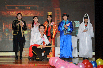 在動感十足、激情四射的開場舞蹈之后,《高層show》把聯(lián)歡會推向一個高潮,平時嚴肅認真的高層領導們化妝成動漫人物的主角穿著盛裝閃亮登場:活潑可愛的阿拉蕾和米老鼠、美麗善良的人魚小姐和白雪公主、帥氣十足的西部牛仔和許文強、和藹可親的紅軍首長、大鬧天宮的孫悟空、滑稽可愛的超級瑪麗,隨著他們依次上場,現(xiàn)場的激情被層層引爆,掌聲、尖叫聲和歡笑聲此起彼伏。隨后各個部門的節(jié)目輪番上陣,為現(xiàn)場歡眾送上了一場精彩紛呈的視覺盛宴?,F(xiàn)代舞《江南Style》《熱舞cry cry》《爵士舞》炫酷十足,秀出了無限活力;《夫妻雙雙把家回》《趕生靈》展現(xiàn)了別樣的地方特色和風情;《紅星閃閃》、《可愛的藍精靈》、《葫蘆娃》、《數(shù)鴨子》、《忘情水》等各具特色的老歌組成的歌曲串燒,配上滑稽可愛、嬉哈雷人的舞蹈,帶我們走進了純真年代,重溫了昔日情懷;而精彩而滑稽的反串版小品《荊軻刺秦》、《戀愛辯論賽》、《暴發(fā)戶》更是以其幽默、搞怪的表演笑爆全場,將晚會氣氛推向高潮,現(xiàn)場成了一片歡樂的海洋。
