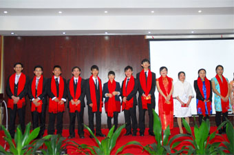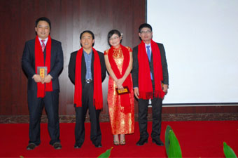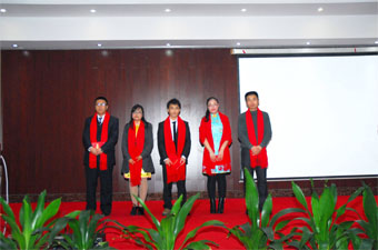 本次會議由李建東、梁鳳丹主持并做精彩的開場白。會議現(xiàn)場,女同事們的古典旗袍搭配男同事們的帥氣西裝,每人身披紅色圍巾,使得會場內(nèi)充滿喜慶的氣氛,在集體誦讀公司三個理念的激昂氛圍中大會正式開始……