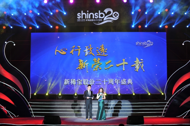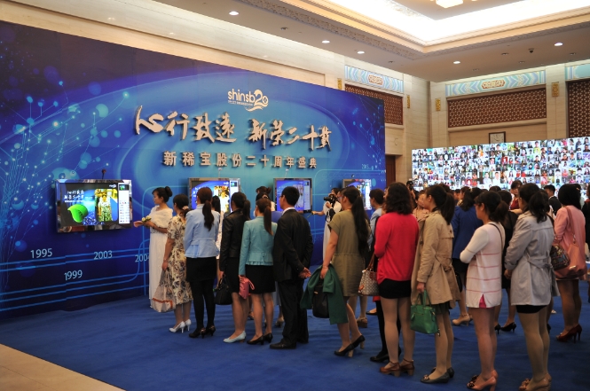 2015年5月9日,是新稀寶股份二十周歲生日,這一天,新稀寶股份全體員工共計600余人,齊聚山東濟南南郊賓館為公司慶生,公司董事長湯傳忠先生、常務(wù)副總杜征國先生、副總鄭朝霞女士等全體高層盛裝出席。