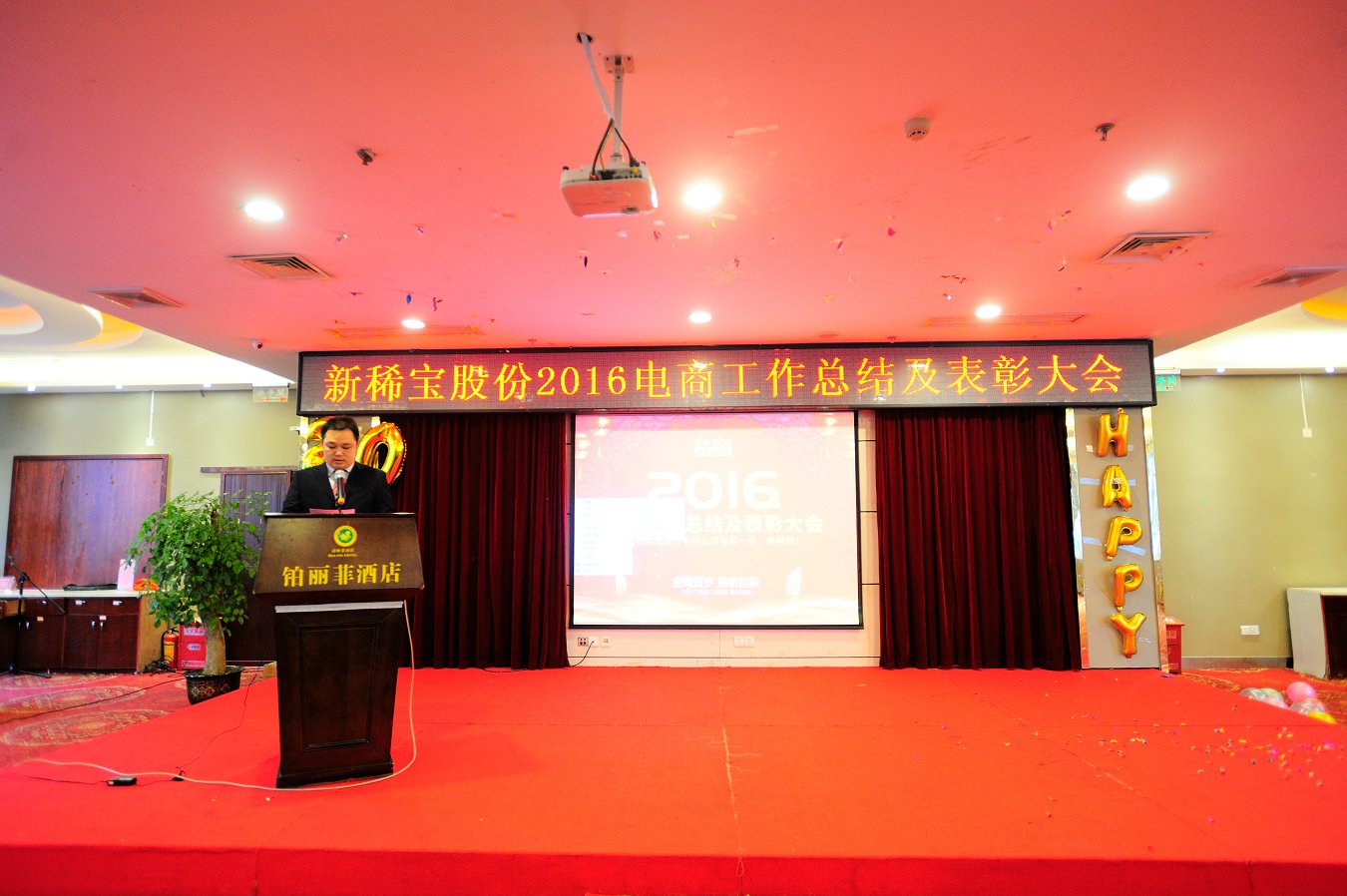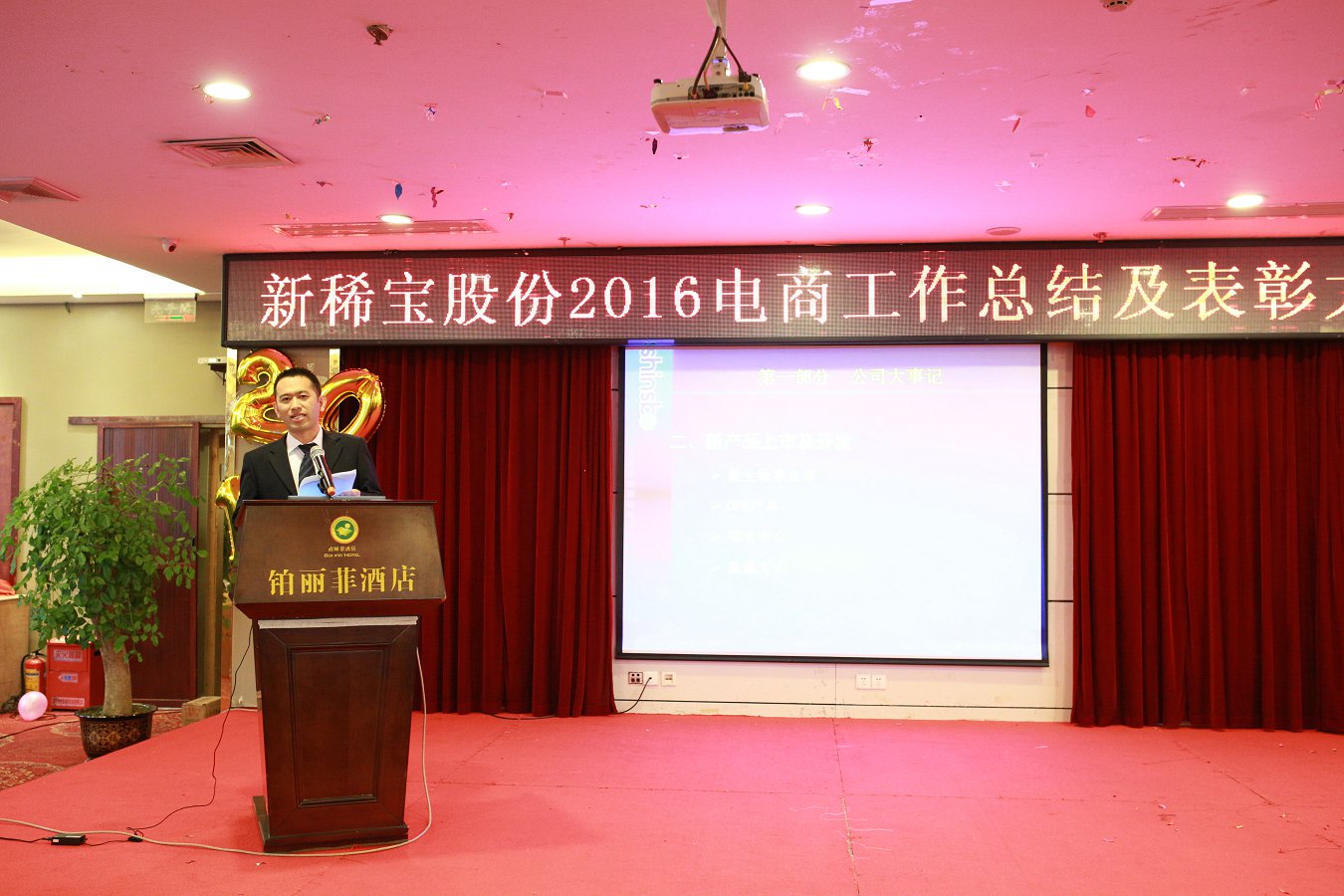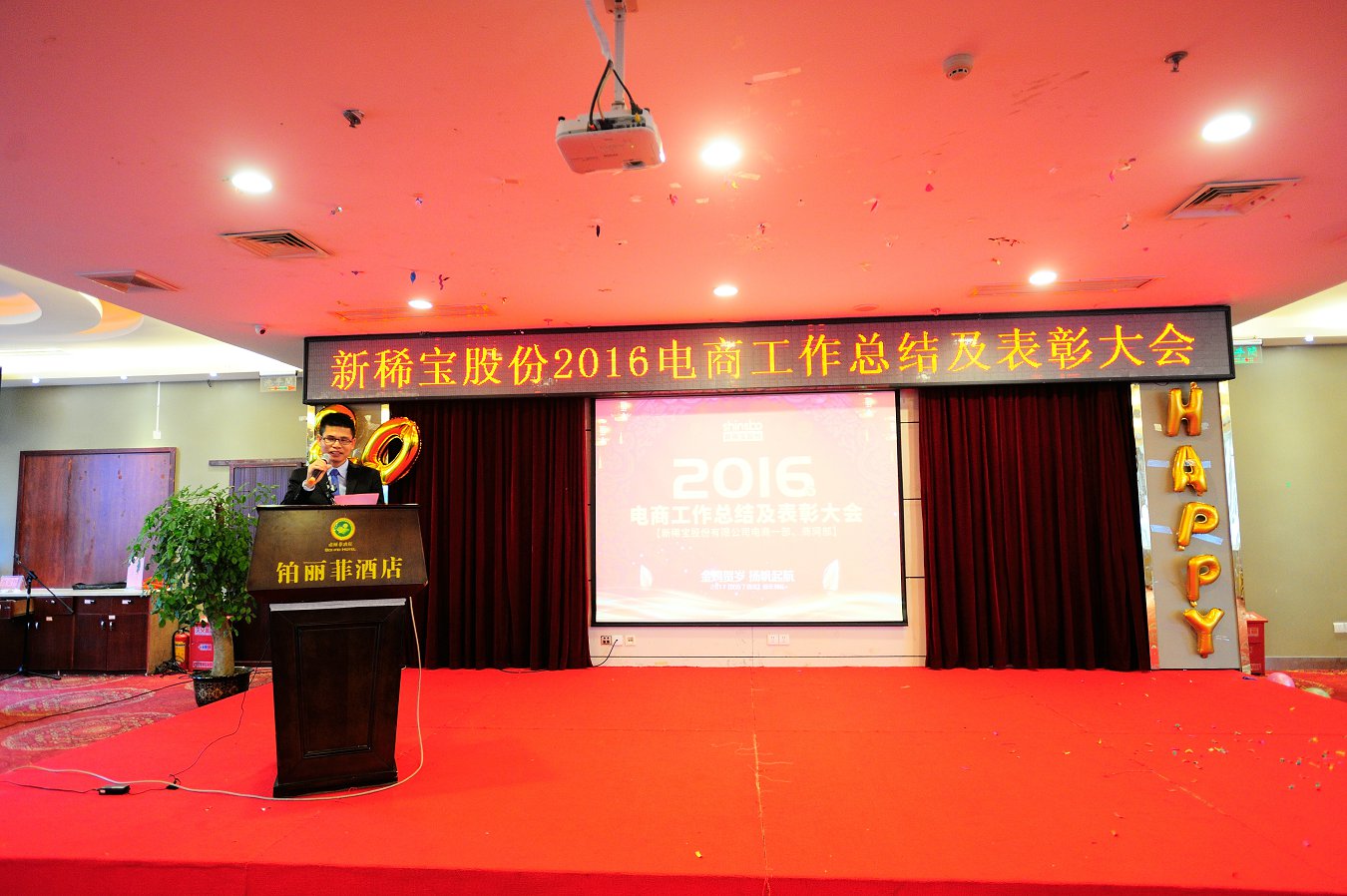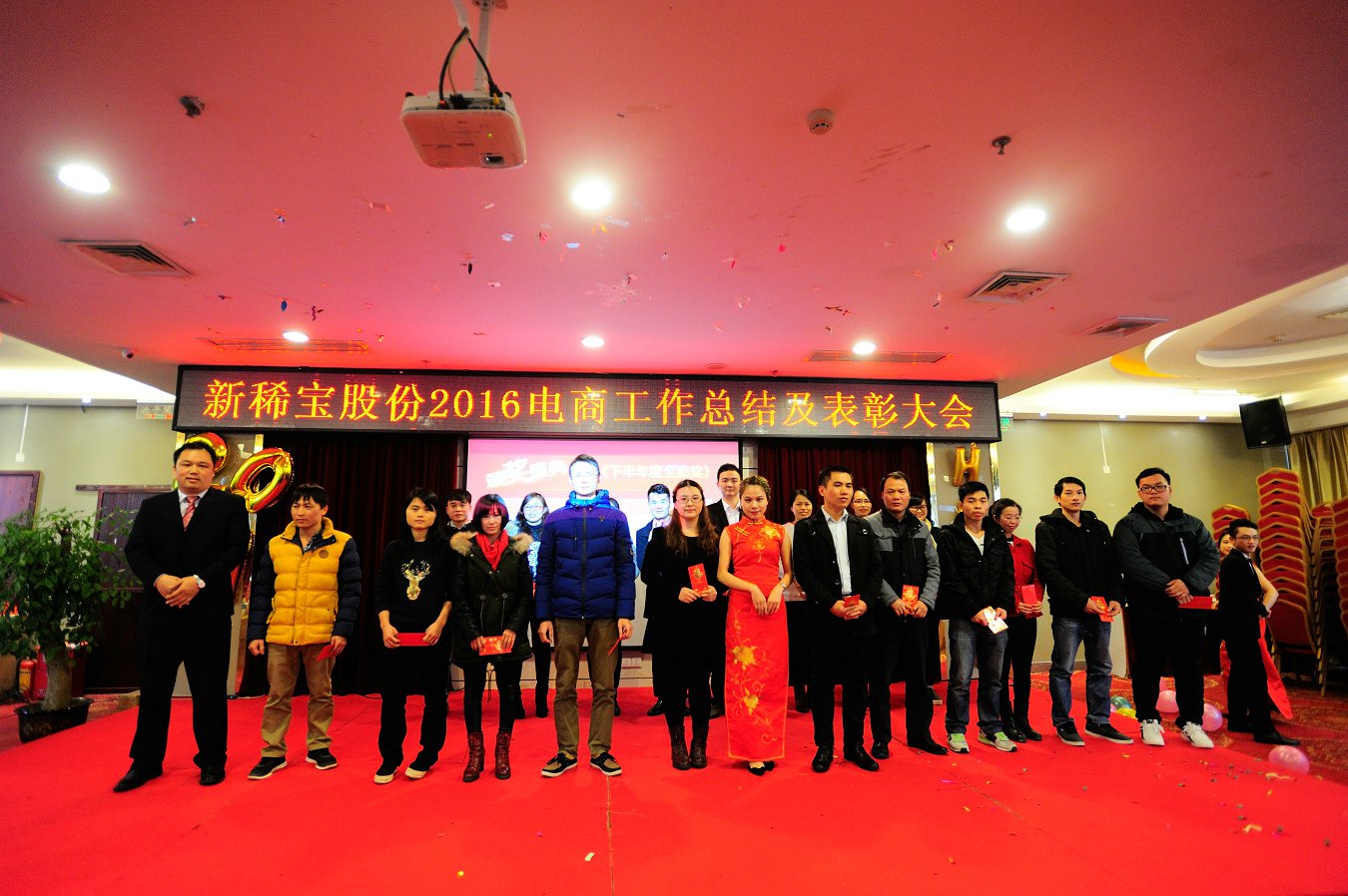 綠城南寧金雞賀歲,電商商網(wǎng)揚(yáng)帆起航。2017年1月13日,新稀寶股份2016年度電商及商網(wǎng)工作總結(jié)暨表彰大會(huì)在廣西南寧鉑麗菲酒店正式召開。電商事業(yè)部一部、商網(wǎng)部全體精英共計(jì)80余人參加了此次盛會(huì),新稀寶股份有限公司副總經(jīng)理-鄭朝霞女士、高層經(jīng)理輪值主席-張秋峰先生、生產(chǎn)總監(jiān)-王猛先生、電商事業(yè)部副經(jīng)理-李建東先生、南寧分公司副經(jīng)理-陳文歡先生均出席了本次會(huì)議。