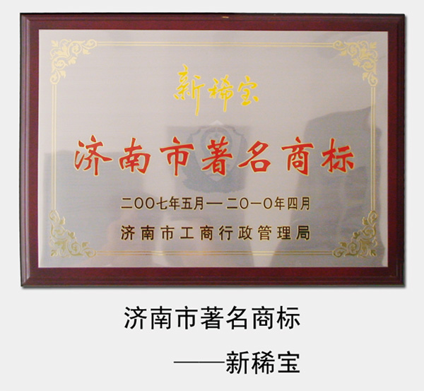 2007年-2013年,“新稀寶”被濟(jì)南市工商局評為“濟(jì)南市著名商標(biāo)”
