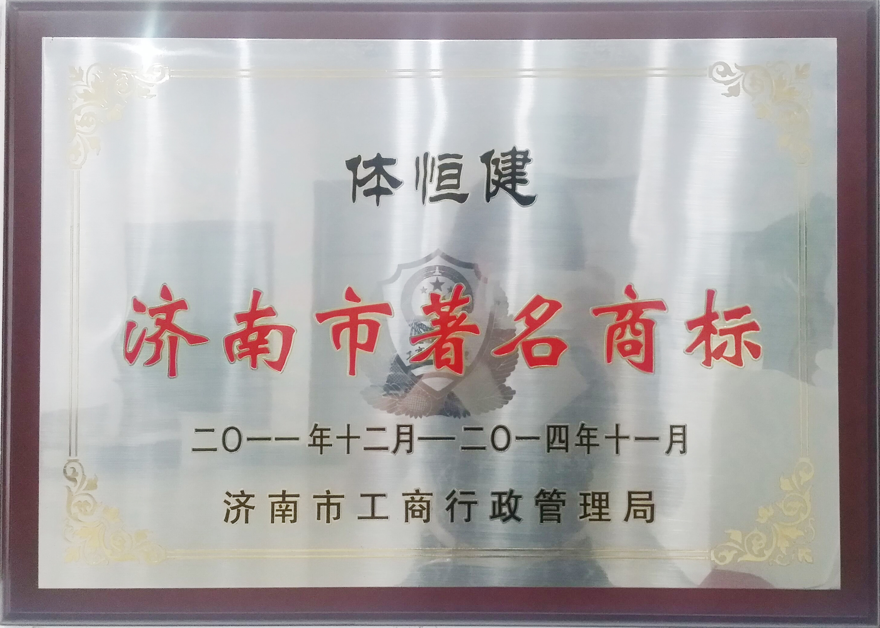 2008年-2014年,“體恒健”被濟南市工商局評為“濟南市著名商標”