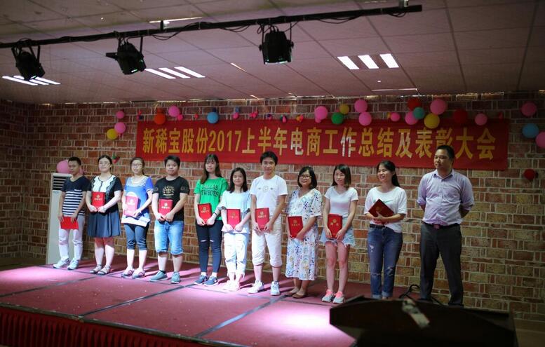緊張激烈的競技賽之后,新稀寶股 份2017上半年電商、商網(wǎng)工作總結(jié)及表彰大會17:30開幕。會議剛開始,陳文歡經(jīng)理做了簡單的人事任免宣布,隨著公司不斷發(fā)展壯大,機(jī)構(gòu)調(diào)整也越來越 合理,人才的選拔,布局的完善,預(yù)示著企業(yè)的發(fā)展將愈來愈好、愈來愈快。緊接著是張秋峰經(jīng)理發(fā)表講話,從辦公地點(diǎn)的愈加緊湊、商網(wǎng)質(zhì)的飛躍,電商的持續(xù)發(fā) 展說起,感慨南寧分公司的發(fā)展之迅速。不但健康行業(yè)發(fā)展快速,孕嬰事業(yè)部也在快速增長中,外部競爭激烈,內(nèi)部競爭亦不容忽視。電商、商網(wǎng)下半年需心往一處 想,勁往一處使,爭取早日實(shí)現(xiàn)跨越式的增長。