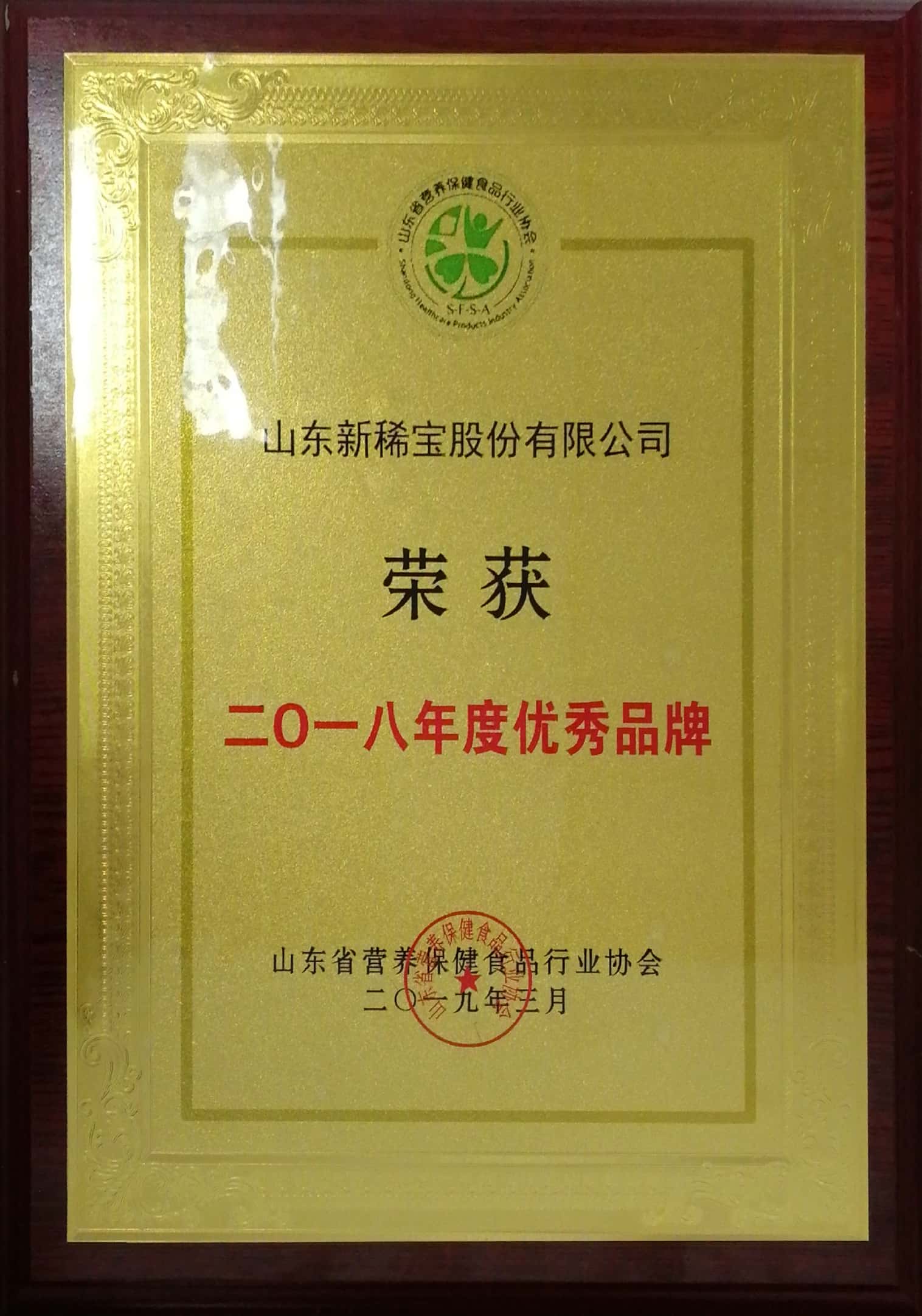 被山東省營養(yǎng)保健食品行業(yè)協(xié)會授予“二0一八年度優(yōu)秀品牌”