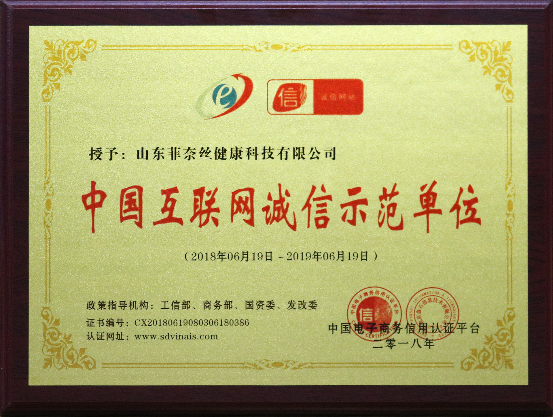 2018年被中國電子商務(wù)信用認(rèn)證平臺(tái)授予“中國互聯(lián)網(wǎng)誠信示范單位”
