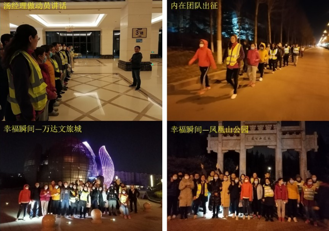 夜晚是讓人可以沉靜的時(shí)間,行走可以讓人與內(nèi)在更好的連接。慢慢降臨的春夜里,新稀寶的夜行大軍已經(jīng)整裝待發(fā),在湯經(jīng)理激情澎湃的動員會之后,浩浩蕩蕩的隊(duì)伍出發(fā)了,沉靜的夜晚靜悄悄,整個(gè)世界都朦朦朧朧的,行走中的力量和能量仿佛一盞明燈,照亮了前進(jìn)的道路。