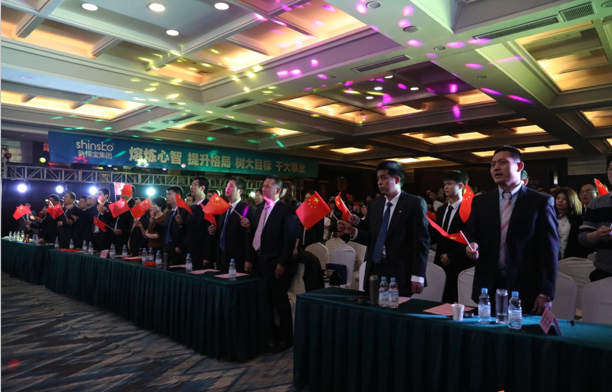 大會在莊嚴的國歌聲中正式拉開帷幕,新稀寶集團人力資本增值部總監(jiān)兼人力行政部經(jīng)理于鳳仙女士主持大會,在主持人的帶領下全場共同觀看了氣勢恢宏的《贏定2020主題片頭》,全體參會代表集體誦讀企業(yè)文化,并宣讀本次年會主題口號“肩負使命、擔當責任、砥礪奮進、勇攀高峰;熔煉心智、提升格局、樹大目標、干大事業(yè)”,慷慨激昂的誦讀聲響徹整個會場,激勵著在場的每一位將士。