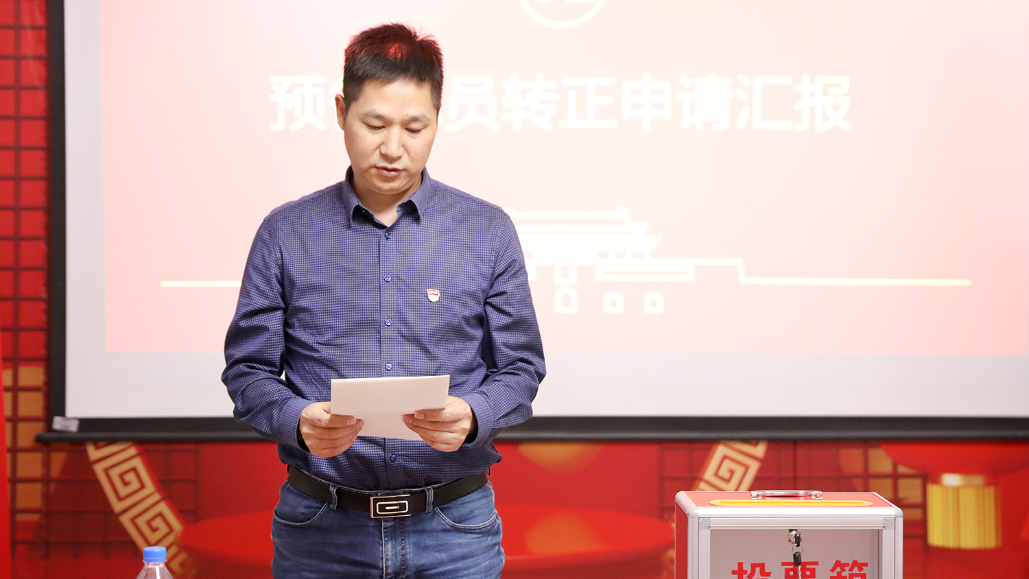 為進(jìn)一步增強(qiáng)黨的隊伍建設(shè),及時為黨組織注入新鮮血液,增強(qiáng)基層黨組織的凝聚力、戰(zhàn)斗力、影響力,根據(jù)《中國共產(chǎn)黨發(fā)展黨員工作細(xì)則》等相關(guān)規(guī)定,在經(jīng)歷一年培養(yǎng)考察、征求黨內(nèi)外群眾意見、材料審查和公示轉(zhuǎn)正信息等環(huán)節(jié)后, 2023年10月9日下午,新稀寶黨支部組織召開支部黨員大會,討論預(yù)備黨員陶青松、楊延躍、李志國同志的轉(zhuǎn)正問題。大會特別邀請了濟(jì)南高新區(qū)齊魯軟件園黨委奧盛片區(qū)黨建指導(dǎo)員徐慶海書記、黨建專員張麗同志,集團(tuán)總經(jīng)理、支部組織委員于鳳仙同志和全體黨員參加了會議,會議由支部書記鄭朝霞同志主持。
